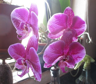 The orchids are the ones that I got last year at this time. Yes. They are re-blooming!