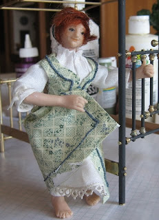 Her only comment was, "See? I have proof that I work!" For some reason, I have a slight suspicion that the messy skirt was deliberate. She keeps making comments about missing her aprons. Maybe I can get to that this afternoon....Do you think that she would be really annoyed if I just washed the dress and got it out? I don't thing that would do at all.